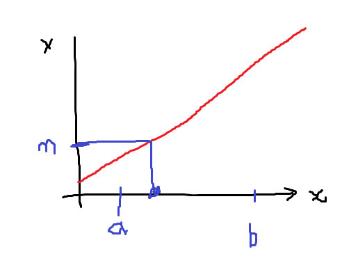 f'(x)>0이고 f(x)>=m을 만족하는 x를 찾는다고 할때, 탐색 구간의 중간을 기점으로 m이 존재하는 공간을 탐색해 간다면, m에 가까워 질것이다. (이때 오차 범위를 dx,dy, 등등 여러가지 방법으로 잡을수 있다.)