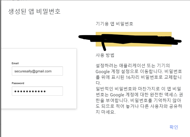 3.앱 비밀번호 설정(비밀번호는 한번만 나오니 기억하자!)